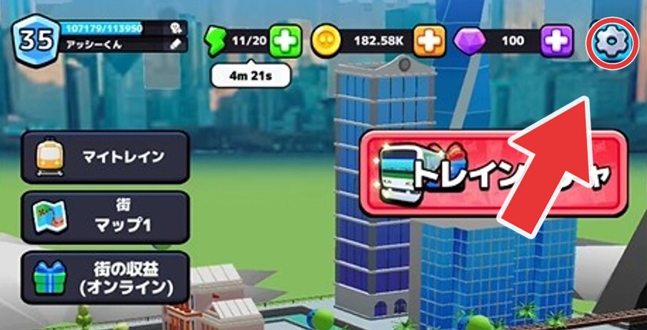 | 2 | 拡大するみんトレホーム右上の歯車を選択 |