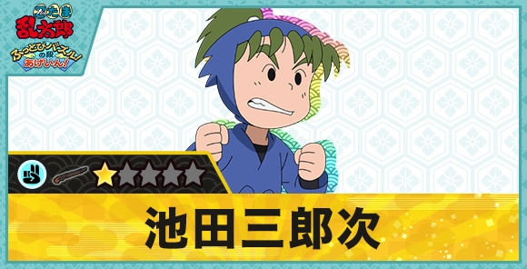 忍たまふっとびパズルの段あげいんの池田三郎次星1(チョキ)の評価と性能をご紹介。忍たまパズルの池田三郎次が使う武器や射程、技、特性についても記載しています。