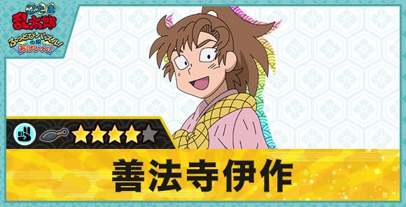 忍たまふっとびパズルの段あげいんの善法寺伊作星4(チョキ)の評価と性能をご紹介。忍たまパズルの善法寺伊作が使う武器や射程、技、特性についても記載しています。