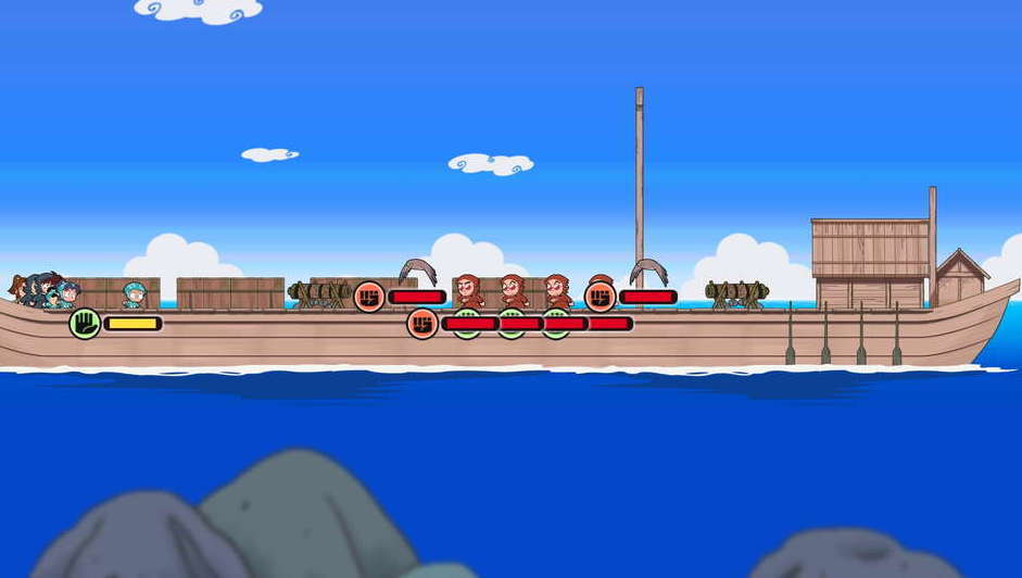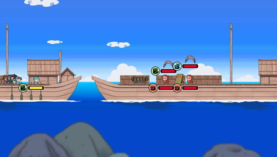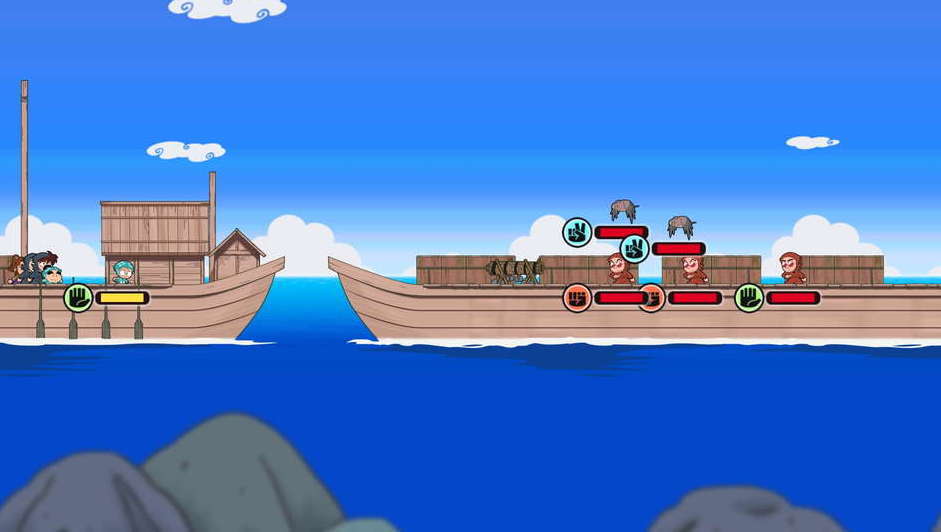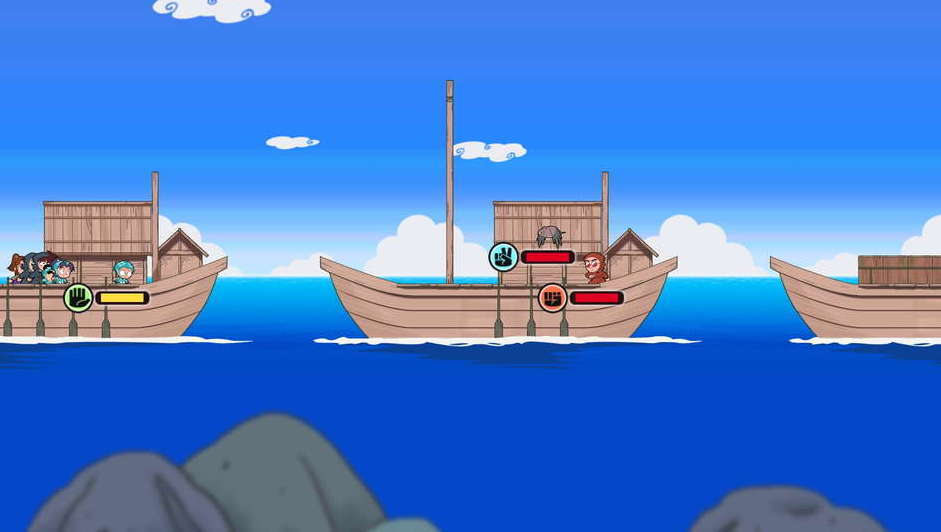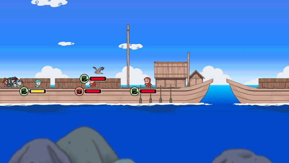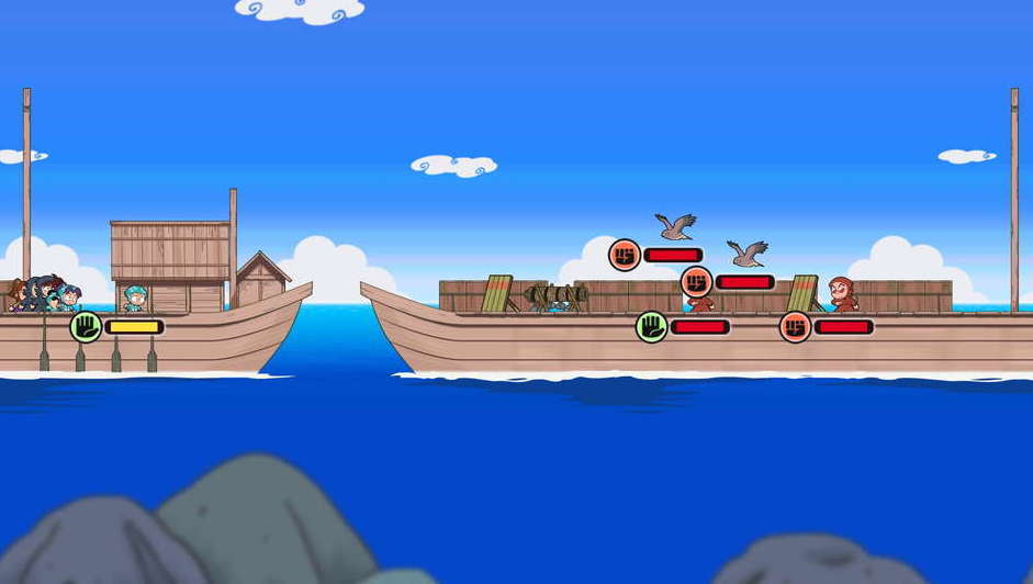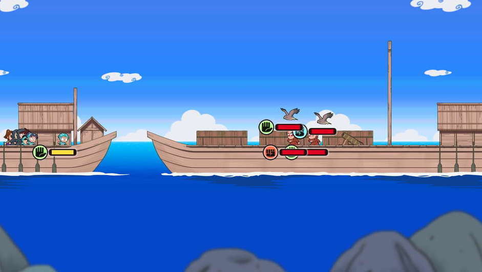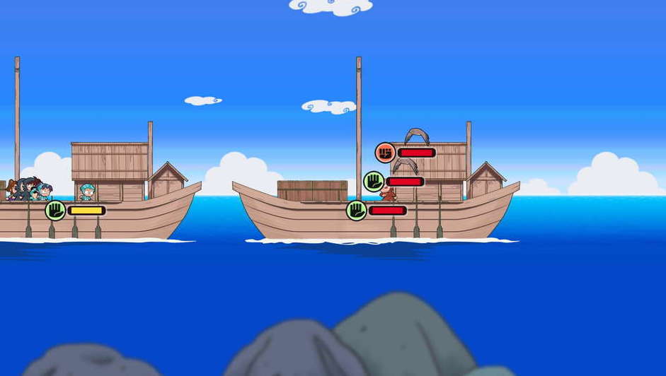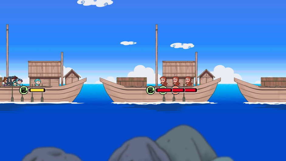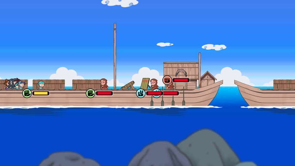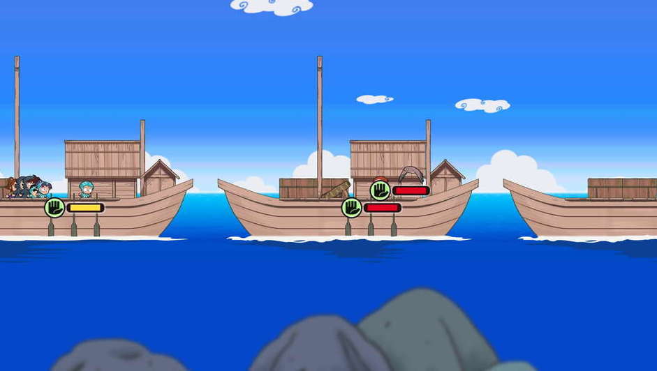 海岸ステージ1から船の間に海があるため、海岸ステージでは海に落ちないようにキャラを飛ばすのが重要です。