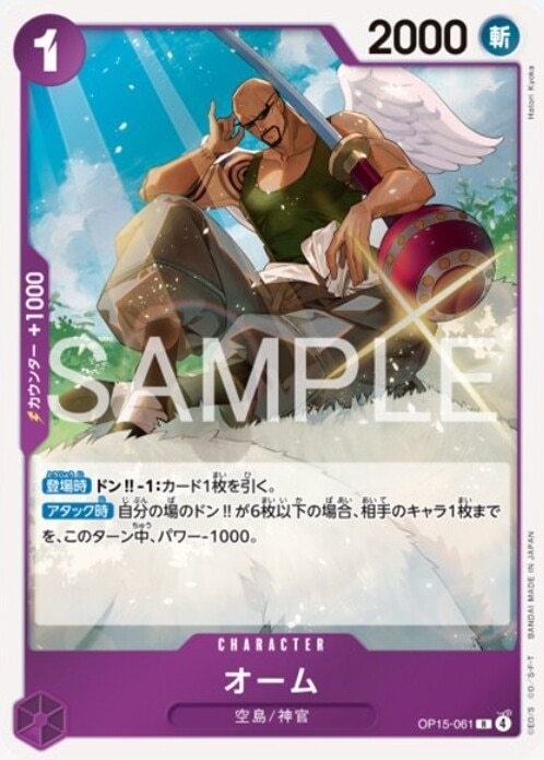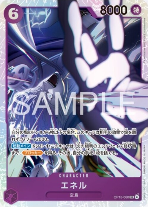 神の島の冒険は、2026/2/28に発売されるブースターパック15弾です。タイトルや表紙からも分かる通り、エネルやシャンドラの戦士など、空島編に登場するキャラクターが多数収録されています。