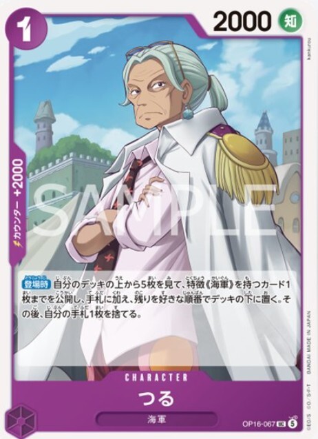 ただし、つるはパラレルになった場合、高額になる可能性が高いでしょう。つるは、優秀な特徴《海軍》のサーチカードかつ、2000カンを持っているので、海軍が主軸のデッキでは4枚採用されるからです。