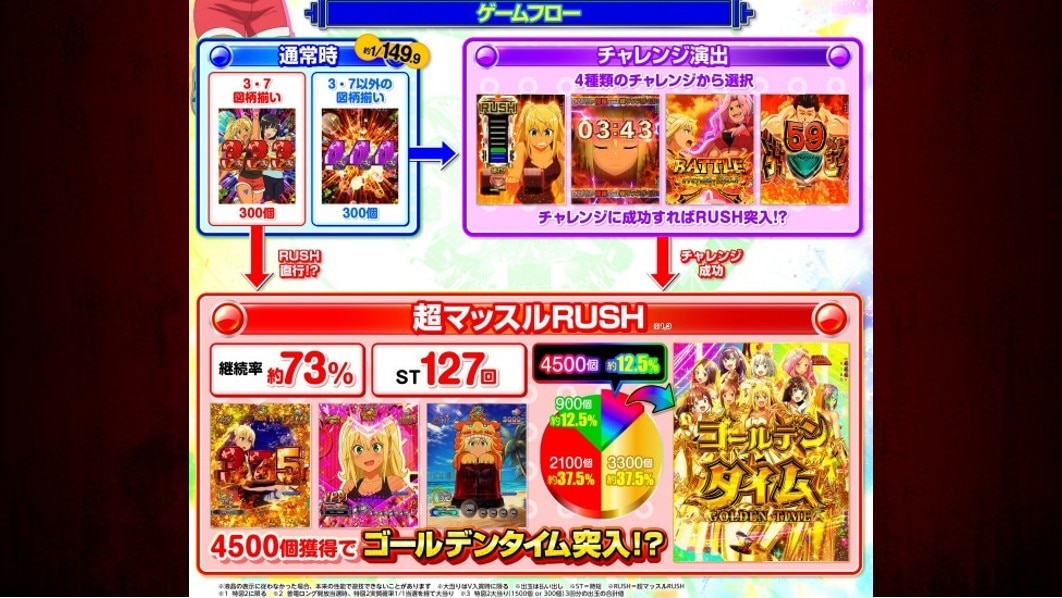 ※3⋯ゴールデンタイム突入時出玉4,500玉+特図2大当たり(1,500玉 or 300玉)3回分の出玉合計値