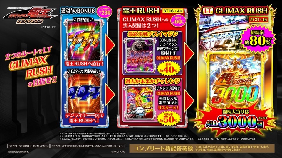 | CLIMAX RUSH継続 | 約80% ※3,000玉 (※3) |
