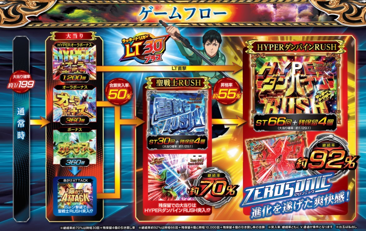 特徴 | ・WバインSPリーチ発展で大当たり濃厚 ・図柄が7に昇格すれば聖戦士RUSH突入 |