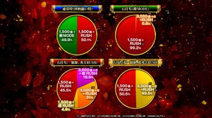 | RUSH突入 | 0.8% (3,000玉+α) 99.2% (1,500玉) |
