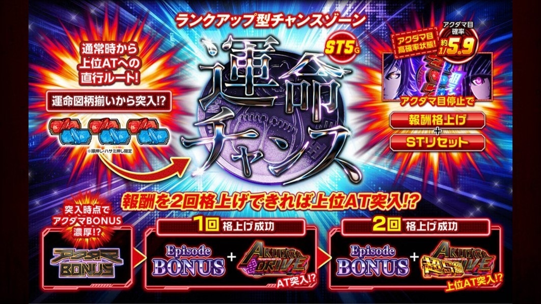 アクダマドライブスマスロのCZ運命チャンスをご紹介。突入契機や継続G数、アクダマ目確率、報酬について記載しています。