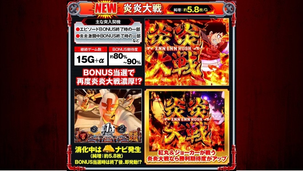 | 突入契機 | 炎炎激闘中のボーナス終了時 エピソードボーナス終了時 |