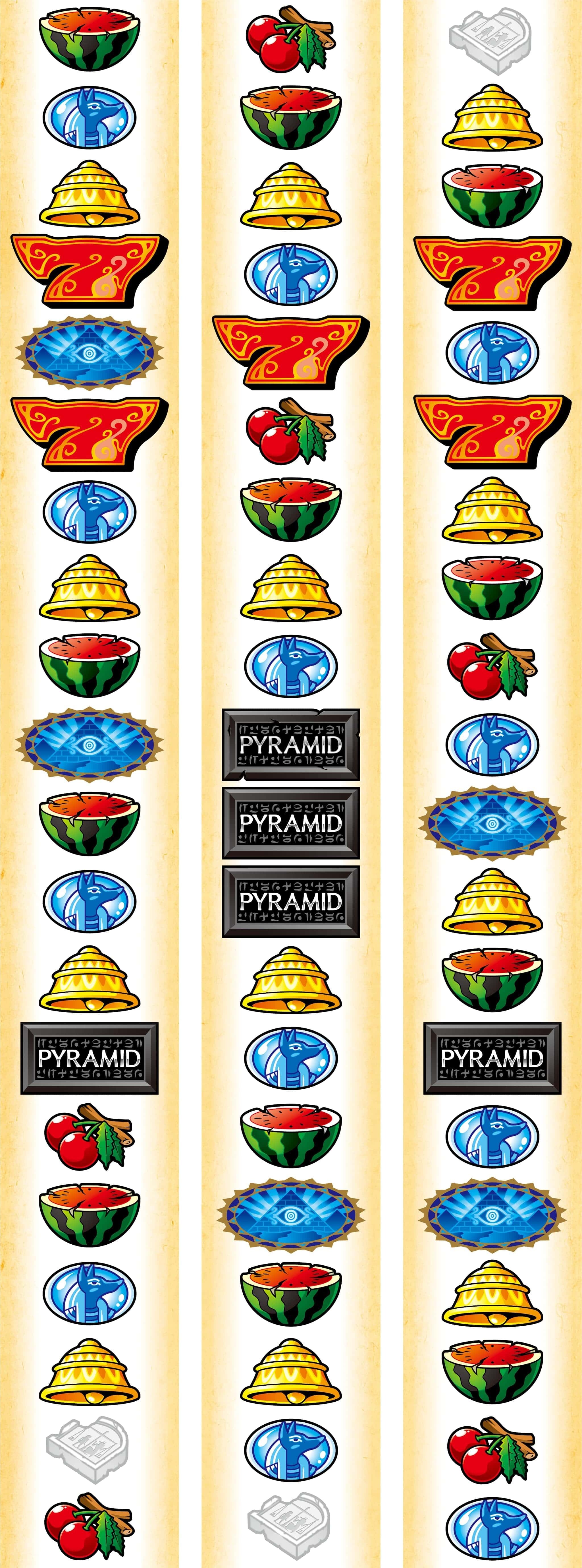 左リールにピラミッド図柄が停止したら、残りのリールにもピラミッド図柄を狙いましょう。ピラミッド図柄が一直線に揃うと強チャンス目、揃わなくてもチャンス目成立なので大チャンスです。