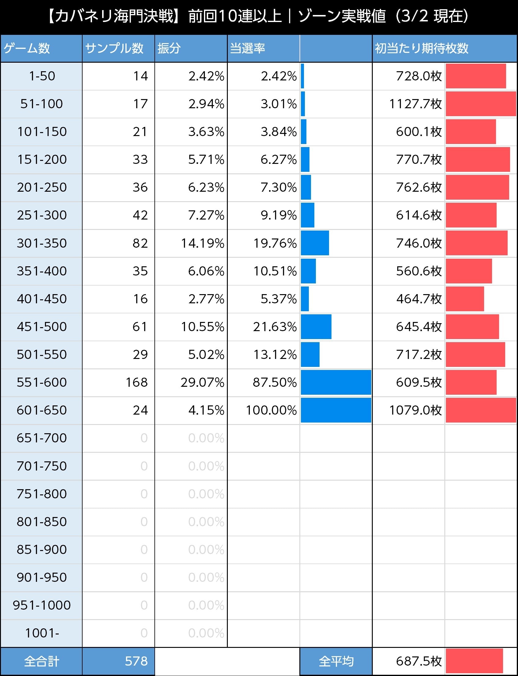 カバネリスマスロの上位後は、朝一リセット時と比較して実戦上1周期目での当選率が下がっていました。反面、初当たり時の期待枚数は増加しており、出玉を増やすチャンスなのは間違いありません。