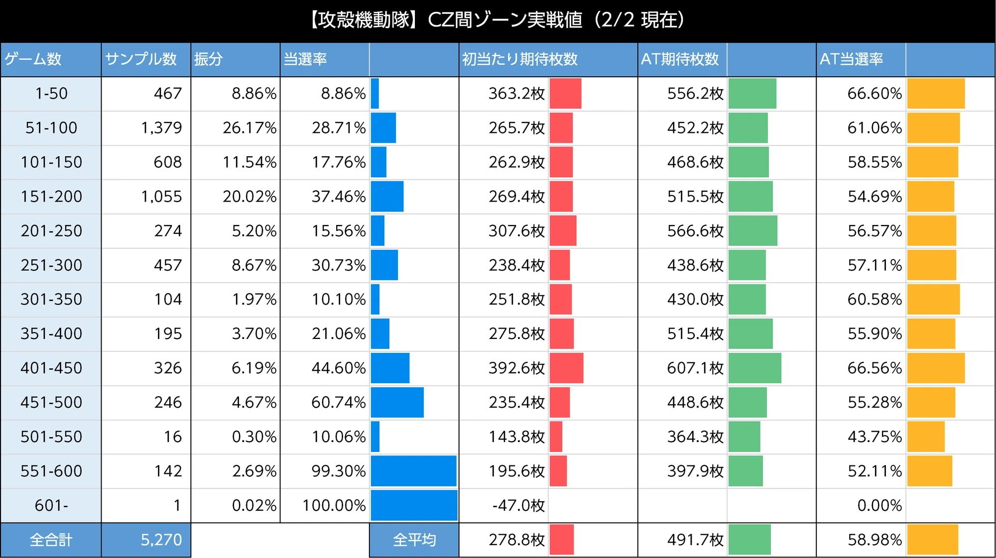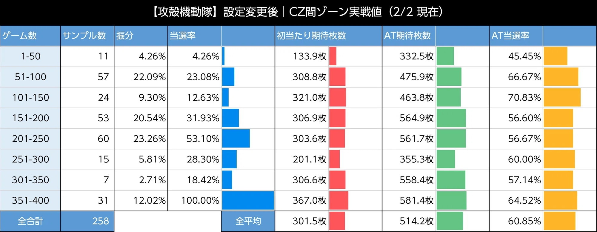 攻殻機動隊スマスロの朝一リセット時は、201~250Gのゾーンが狙い目です。201~250Gのゾーンは実践値で最も当選率が多いので、狙う価値があります。