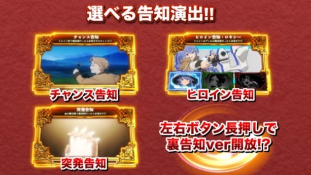 無職転生スマスロの無職転生ボーナスは、告知演出を選べます。告知タイプはボーナス入賞時に選べるので。好みの告知でボーナスを楽しみましょう。