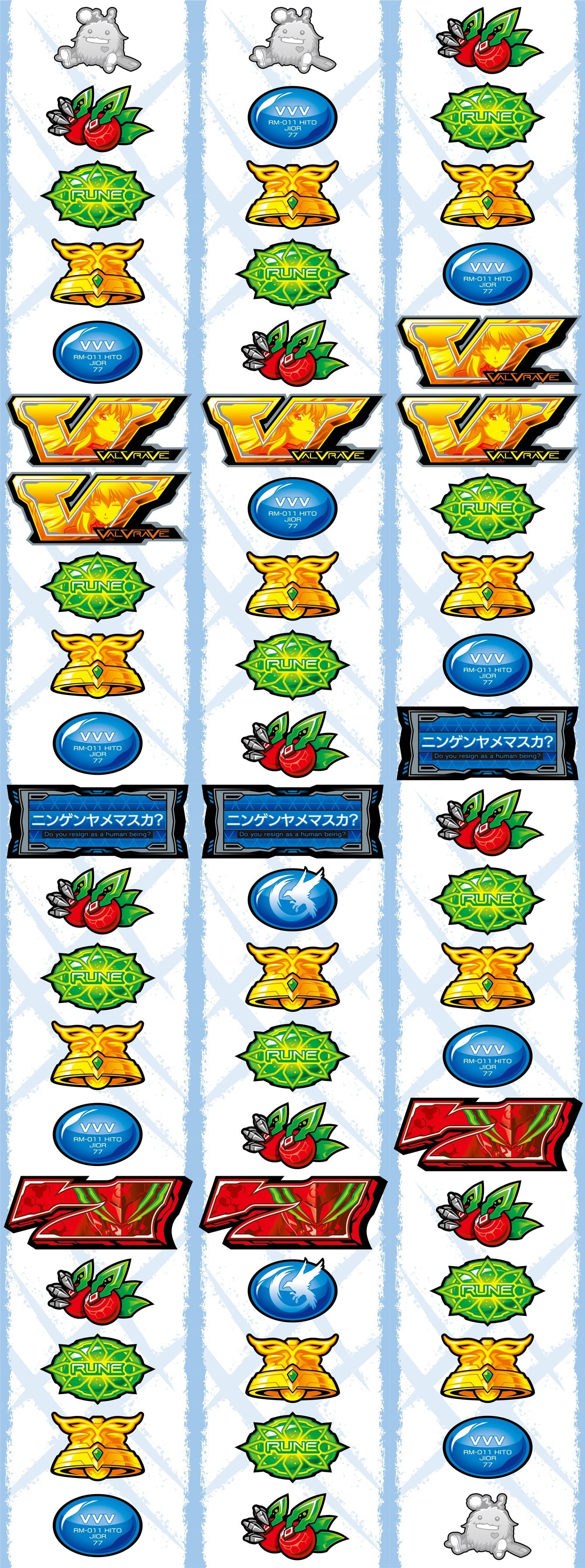 ヴァルヴレイヴ2スロットは、第1停止にチェリーやルーンが停止した場合でも中右リールはフリー打ちで消化しましょう。レア役などの取りこぼしがないので、成立役は停止形で判別できます。