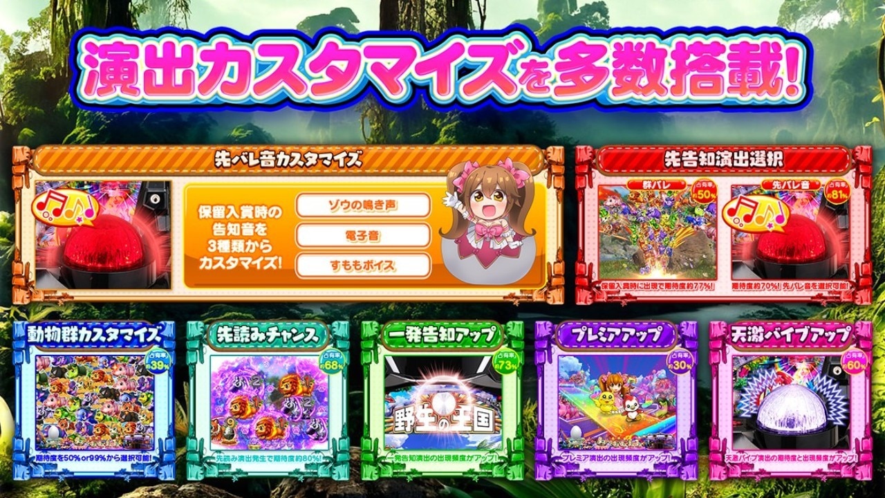 野生の王国6パチンコのスペック解説と演出信頼度のまとめです。ST突入率や継続率、ボーダーや獲得期待出玉についても記載しています。