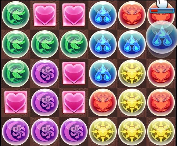 | 【落ちコンなし】5色同時攻撃で1コンボ加算。 ドロップを5個つなげて消すと、攻撃力が10倍。 |