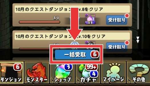 2 | ![]() ※未達成の場合は挑戦ボタンで、対象ダンジョンに移動できる |