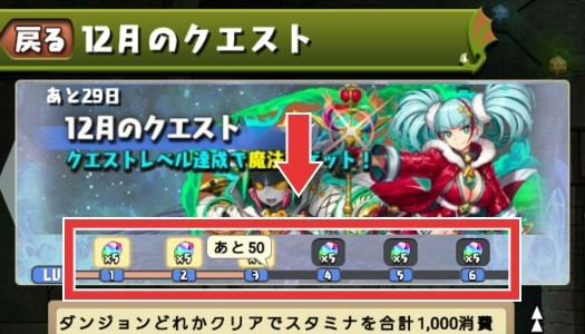 | 3 | 拡大するクエストレベルが上がったら追加報酬の魔法石をゲット※一括受取でも報酬を受け取れる |