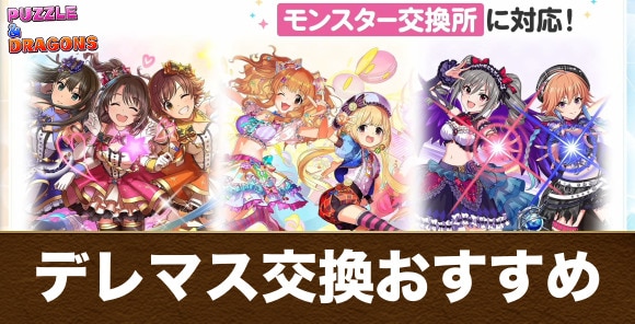 パズドラのデレマスコラボ(アイドルマスターシンデレラガールズ/アイマスコラボ)で交換するべきおすすめキャラを記載しています。誰を交換すべきかの考察や交換用の弾の優先度についても解説しているので、迷っている方は参考にしてください。
