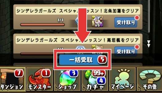 拡大する画面下部の一括受取でも報酬を受け取れる |