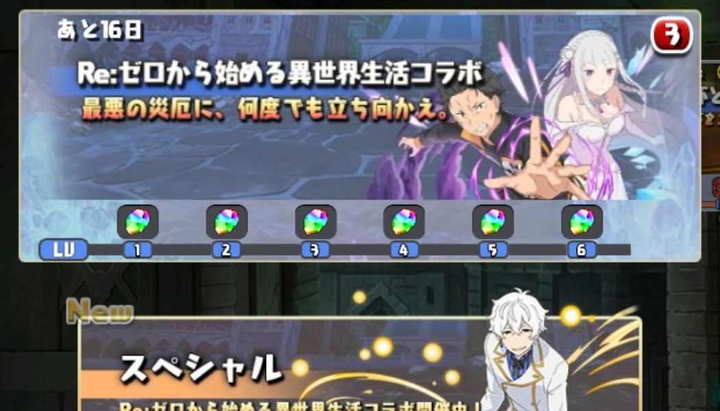 | 1 | 拡大するダンジョン画面上部のリゼロコラボクエストバナーをタップ※横にスライドして切り替え可能 |