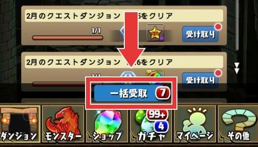 拡大する画面下部の一括受取でも報酬を受け取れる |
