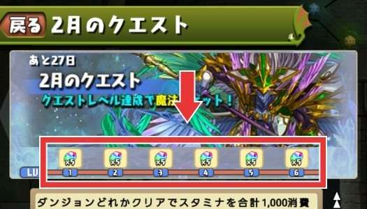 | 3 | 拡大するクエストレベルが上がったら追加報酬の魔法石をゲット※一括受取でも報酬を受け取れる |