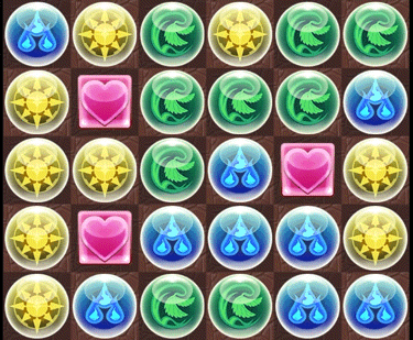 T字消しを組むのが難しい場合は、縦に平積みした後に特定のルートを通るとT字3つが確定します。ただし、落としで繋がる可能性もあるので、余ったドロップはT字を作った反対側に寄せましょう。
