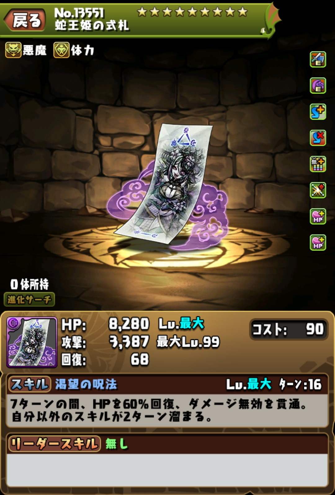 陰陽省の呪符は、全部で8種類の封呪符に進化できます。全て確保したい場合は、ログインとイベントダンジョンの全クリア報酬を除き、陰陽省の呪符をモンスター購入で最低で6つ(60万MP)購入しなければいけません。
