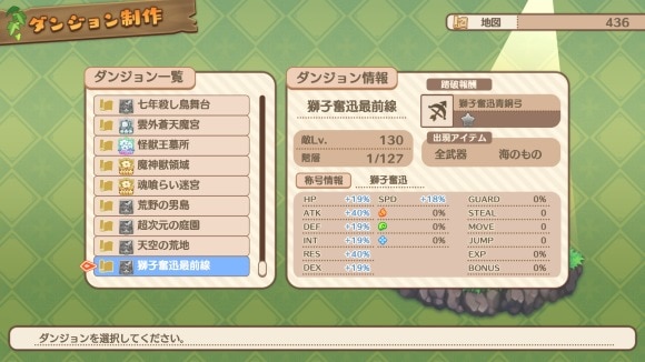 アイテム集めをする場合には敵LVが低めかつ中程度の階層のダンジョンをつくるのがおすすめです。敵LVが高いとコンファイン時の持ち帰り率も落ち、また攻略スピードが遅くなります。