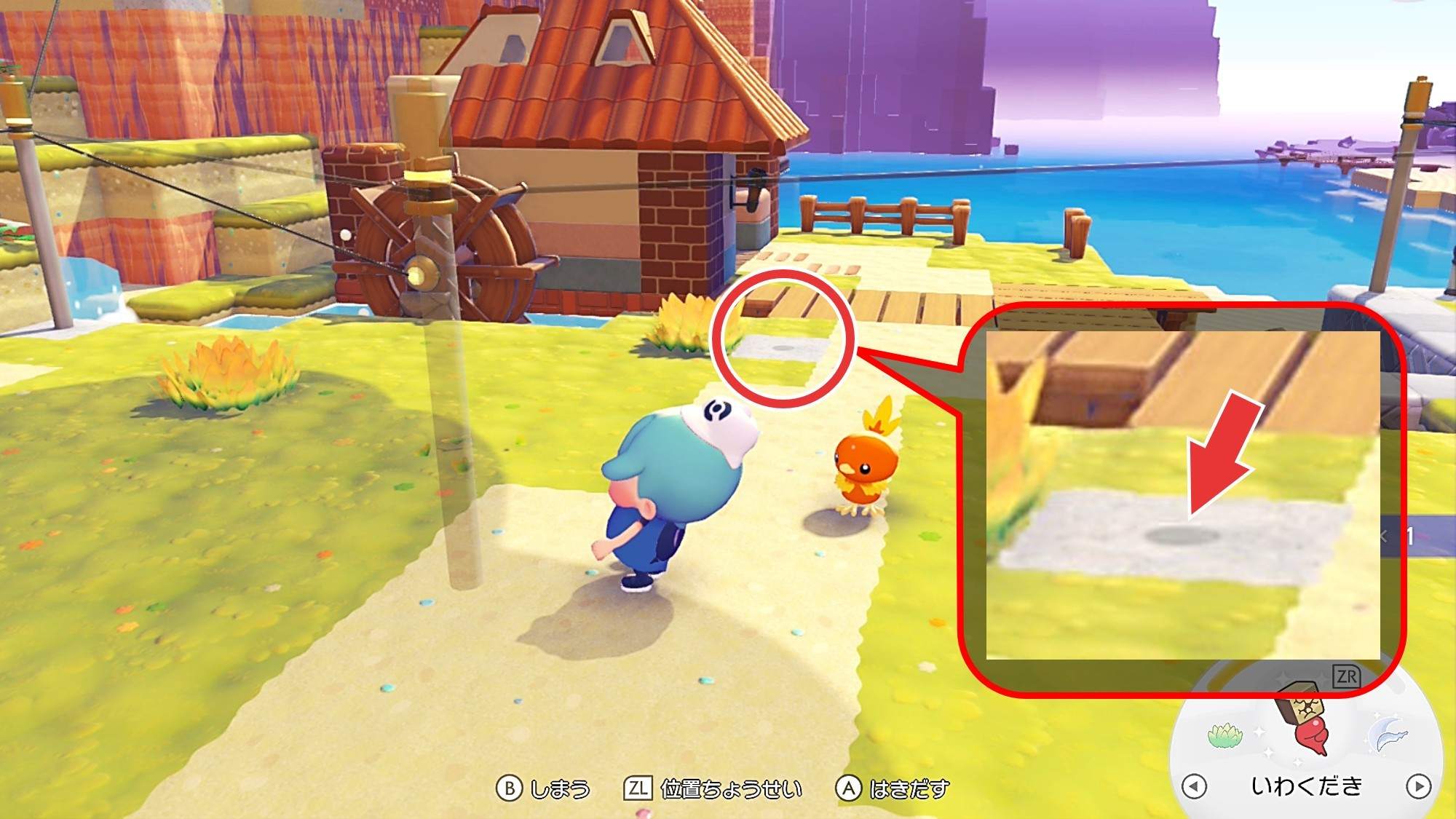 電柱は、地面にある目印に置いていくと綺麗に設置できます。主にドンヨリうみべの街にあるので、電柱の配置に迷ったら地面の跡を探しましょう。