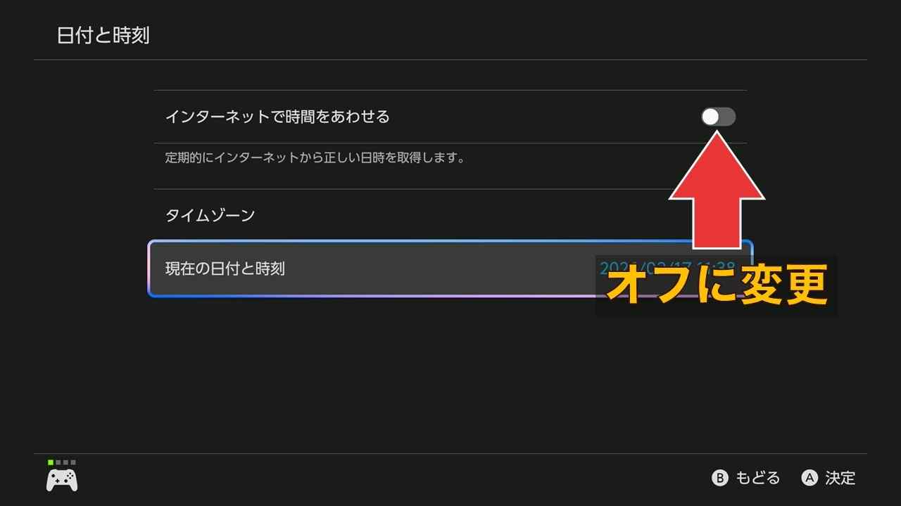 | 4 | 拡大する「インターネットで時間をあわせる」をオフにする |