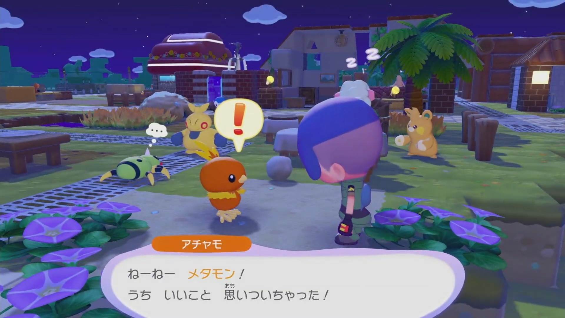ちょすいを習得したら、アチャモの生息地付近でお願いごとを受注しましょう。「みんなで温まろー」の吹き出しが、お願いごと発生の目印です。