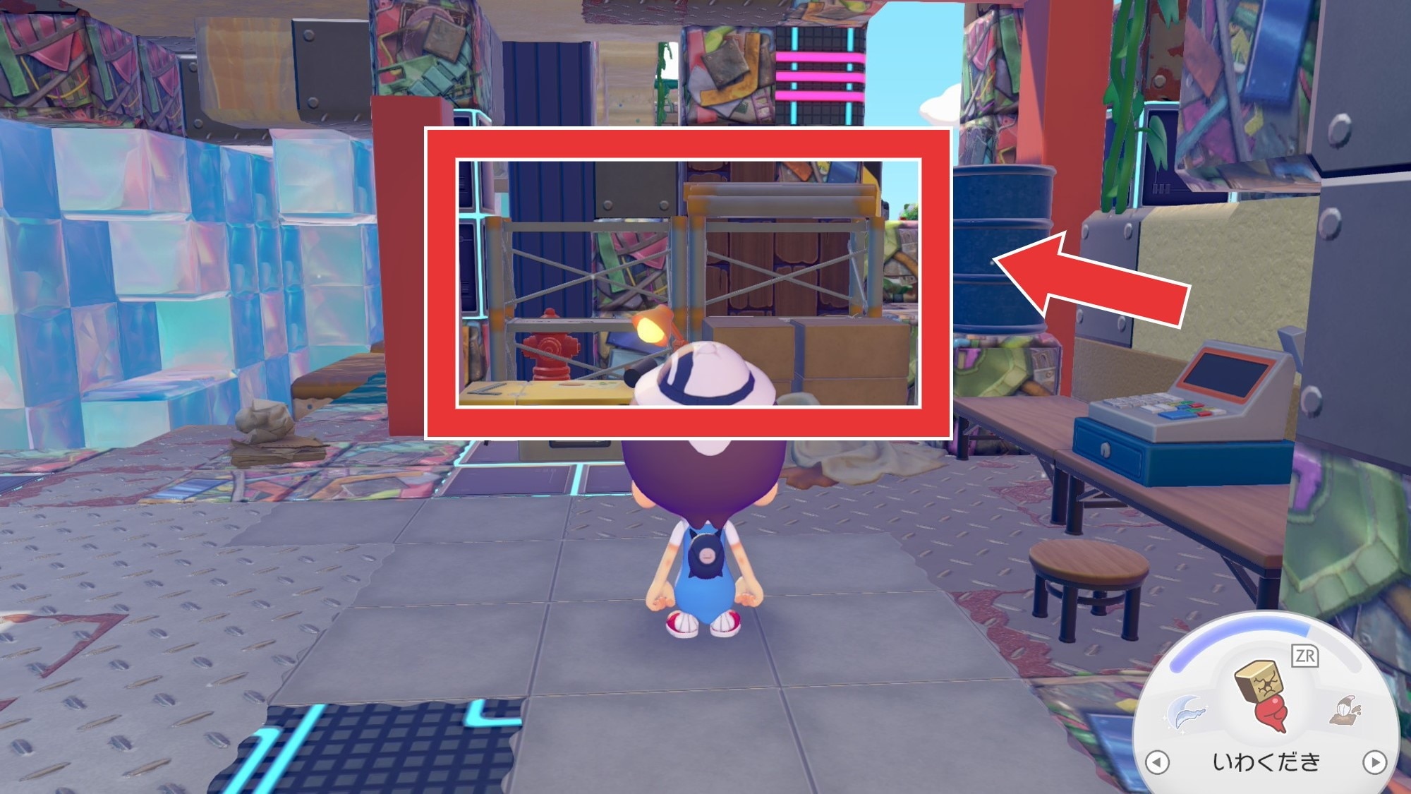 拡大するローブシンの生息地を作るための素材は、マップ上のポケセン東側にあります。発電マシンは大きな建築物の外に、鉄パイプと鉄の足場は、発電マシン裏のクラフト台近くにあるので、回収しましょう。