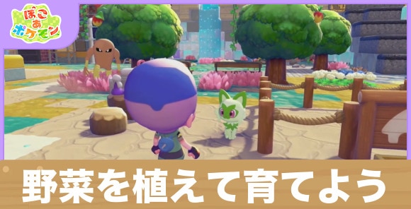 野菜を植えて育てようは、キラキラうきしまの街でニャオハからお願いされます。ポケモンセンターの近くに畑を作って野菜を育てましょう。