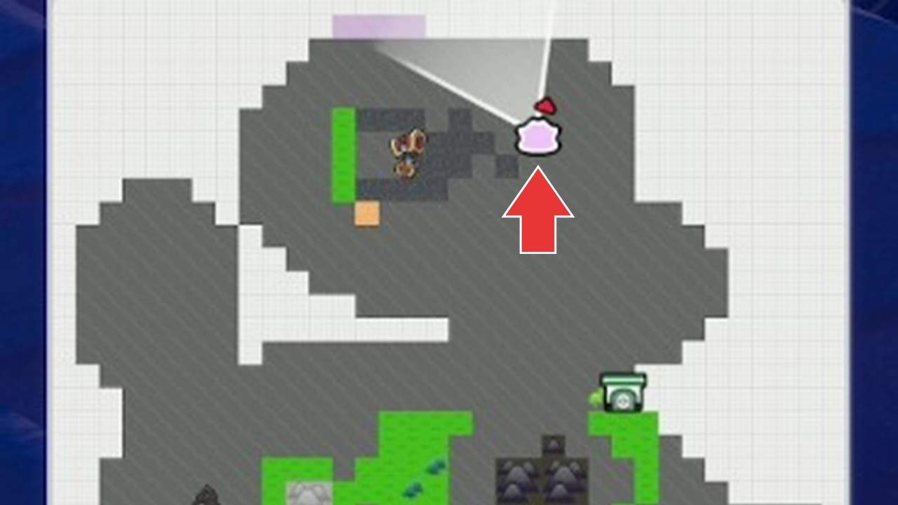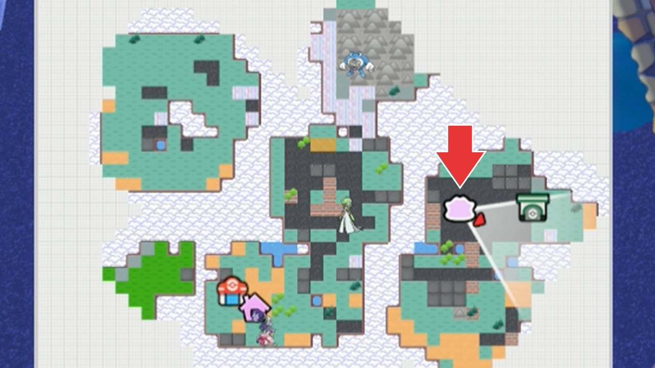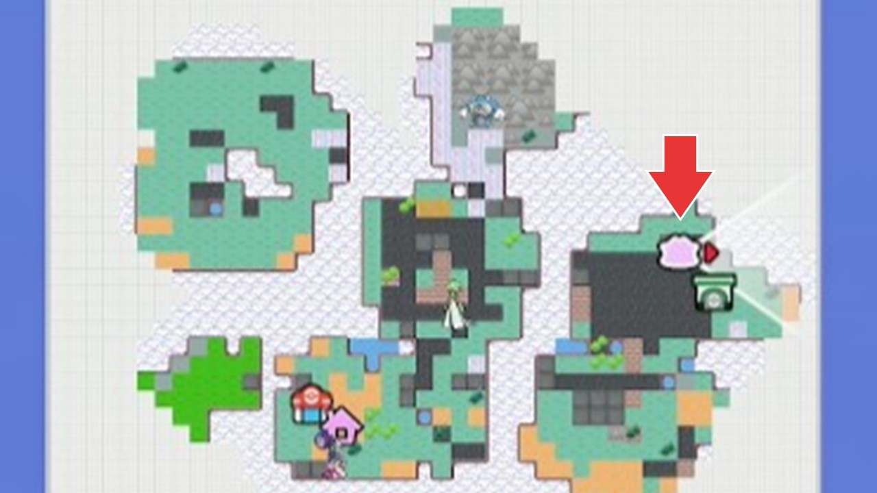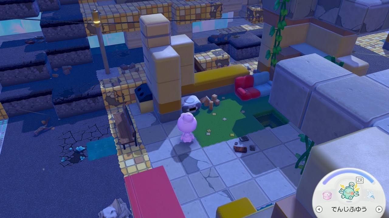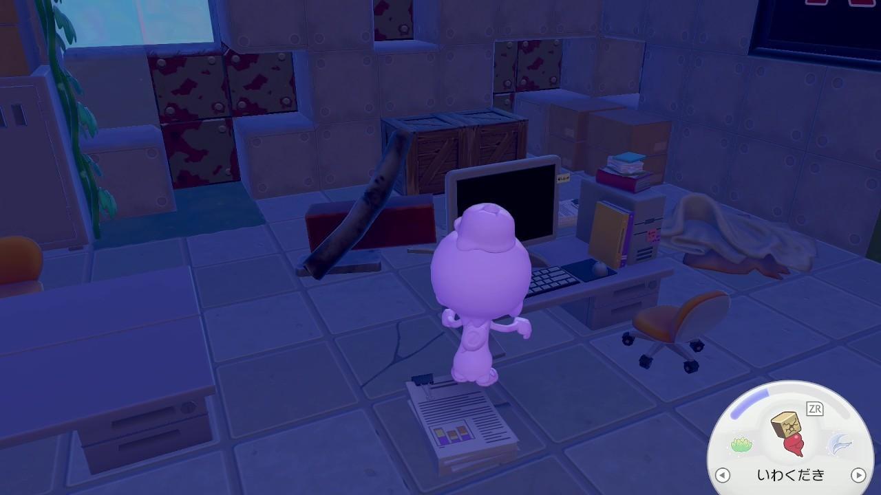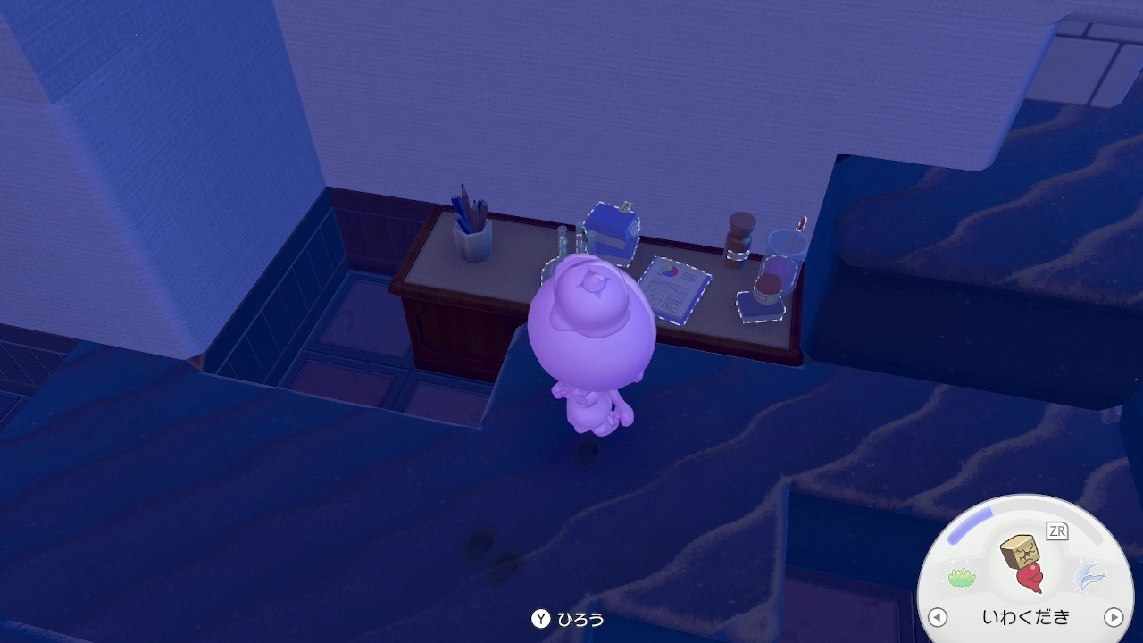 拡大するコンピューターは、キラキラうきしまの街の北東の島で入手できます。床の穴に落ちた先のポケメタルの鉱脈の手前にあるので、Yボタンで回収しましょう。また、同じ北東の島の建物にあるCDプレーヤーも後の手順で必要です。
