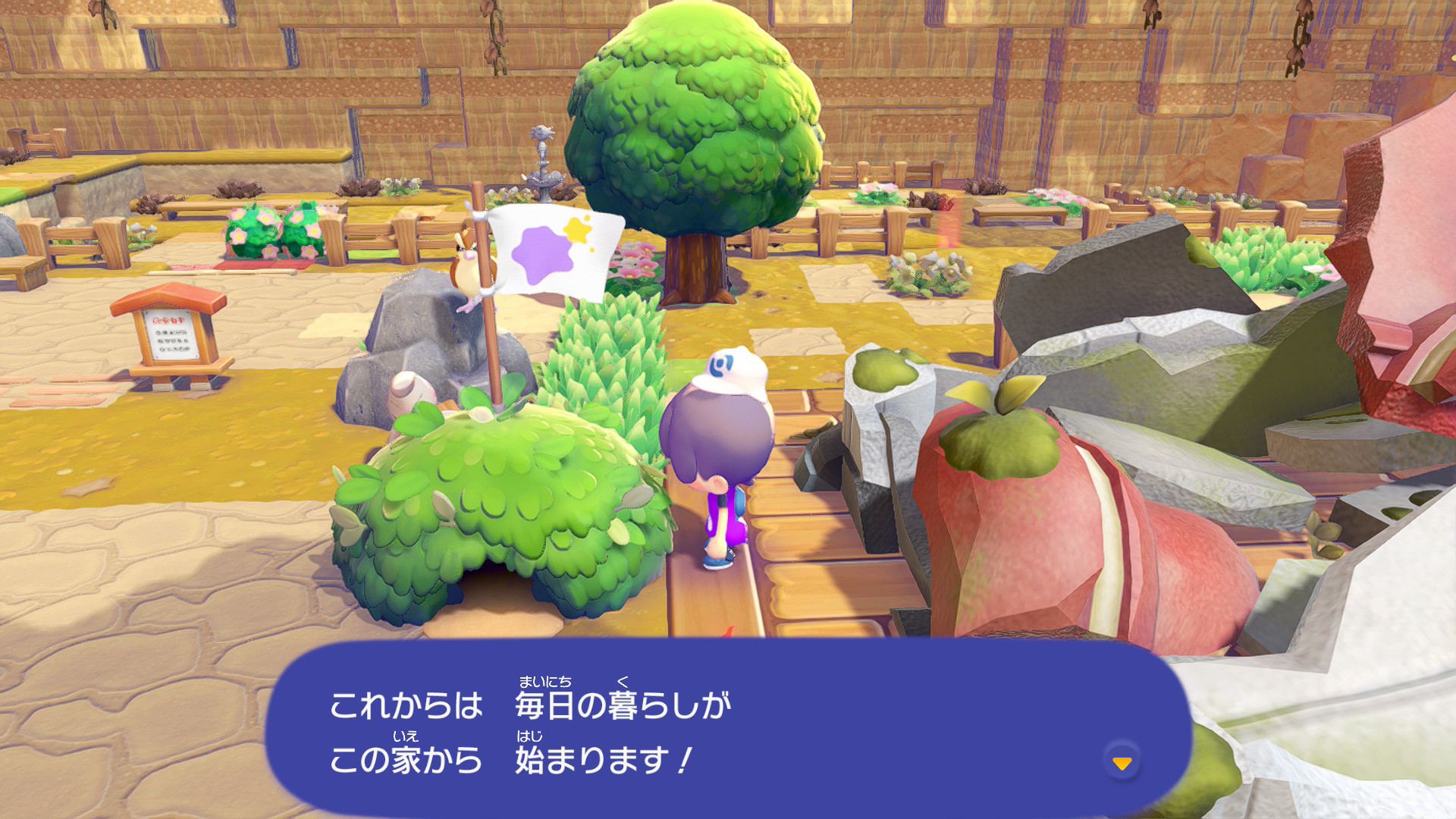 メタモンのはたを置こうをクリアすると、じたく機能が解放されます。好きな家具を置いたり、好きなポケモンと一緒に暮らしたり、現在位置からじたくの場所にファストトラベルできたりするので、積極的に活用しましょう。
