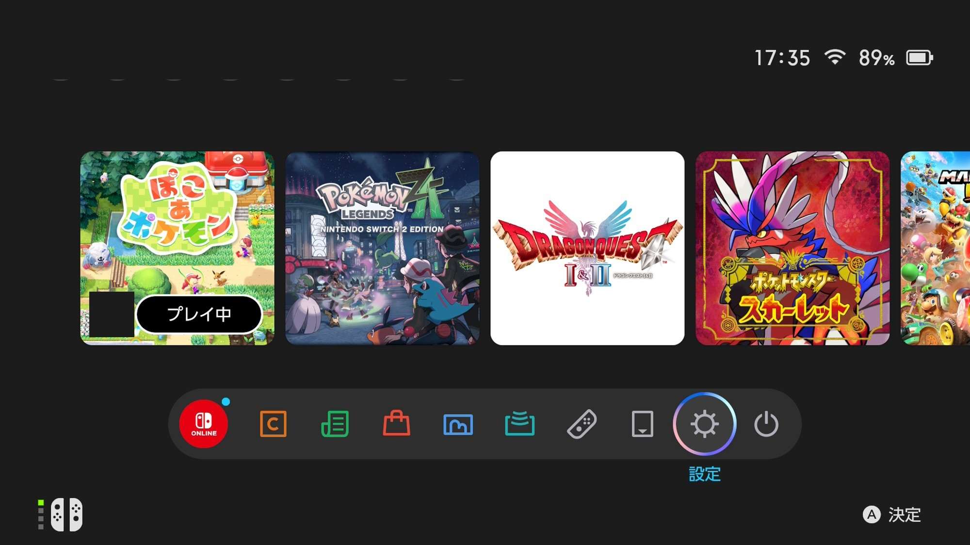 拡大するSwitchホーム画面下項目内の「設定」を選択2