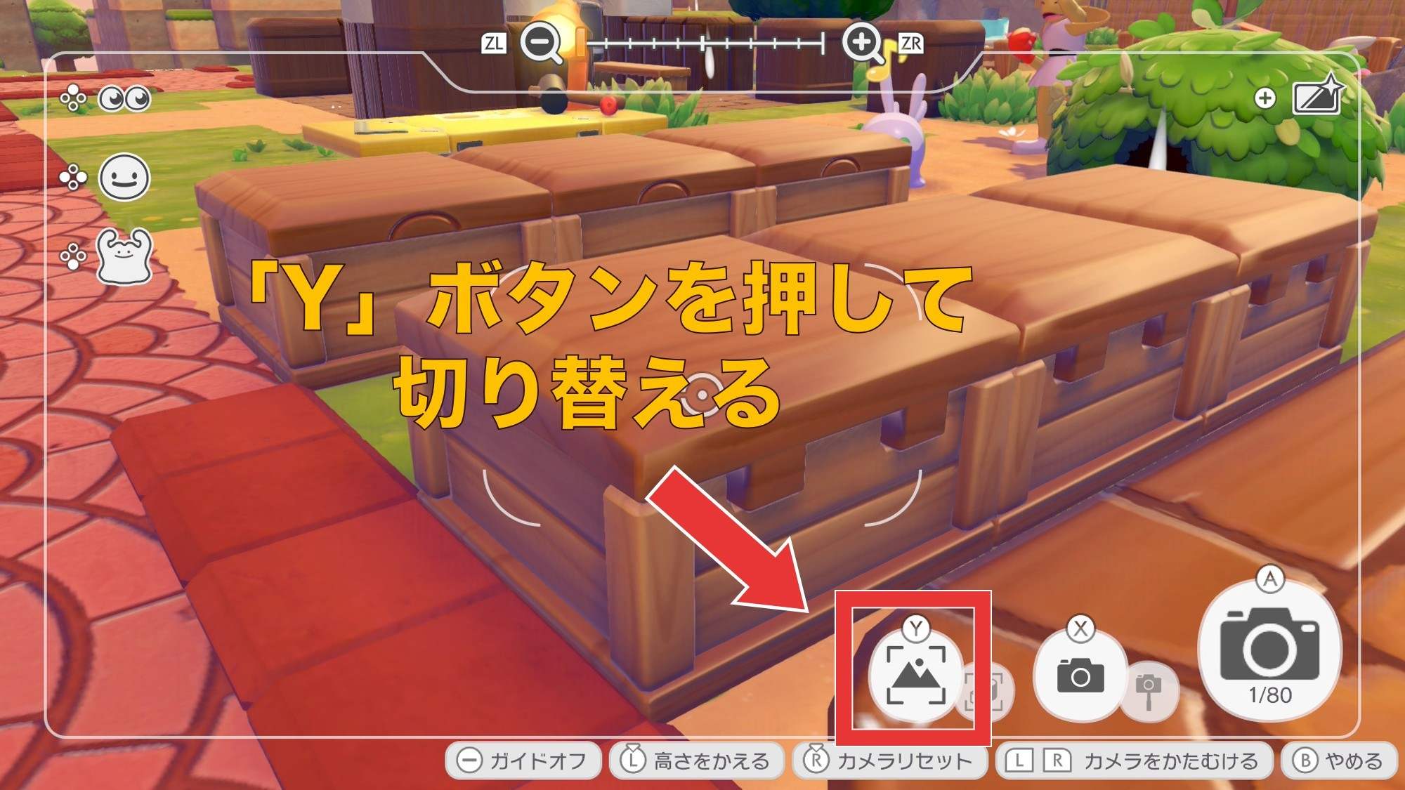 | 2 | 拡大する「Y」ボタンで切り替える |