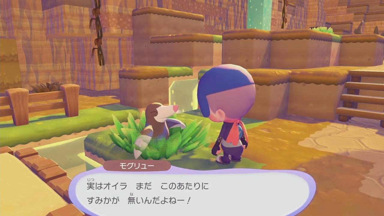 モグリューのすみかを作ってあげようは、パサパサこうやの街の木に囲まれた土の付近にいるモグリューと会話すると発生します。会話時にマメのタネを5個もらえますが、すみかの作成には合計8個必要です。