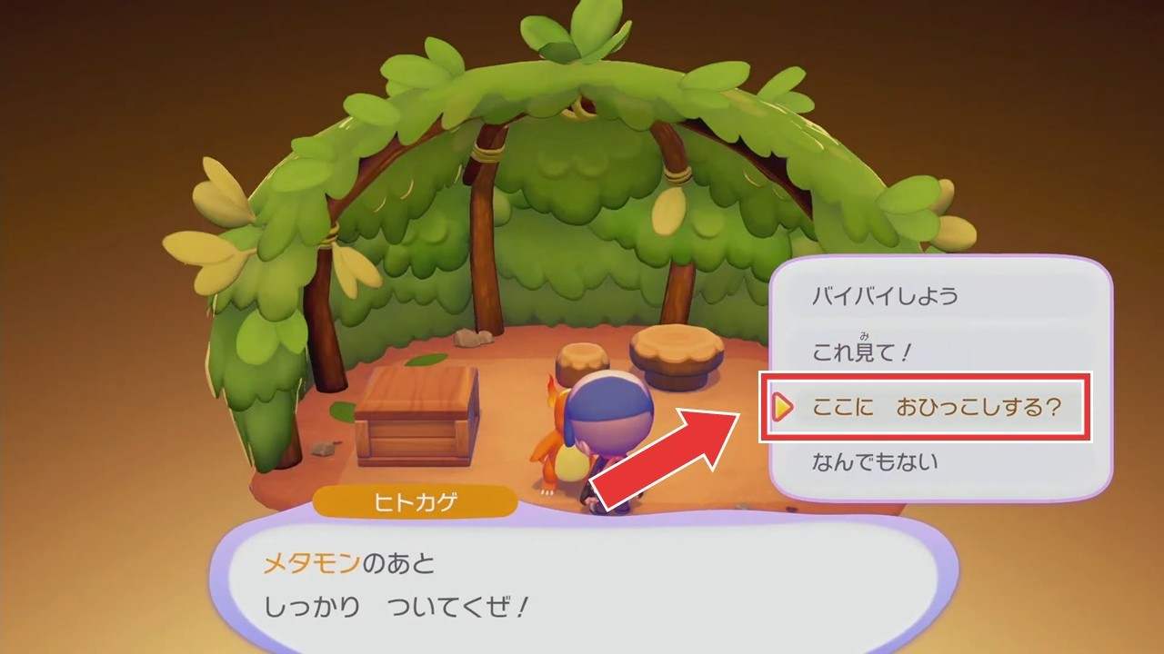 はっぱのお部屋の中に家具を3つ以上置きましょう。家具を置くことで、ポケモンが引っ越せるようになります。