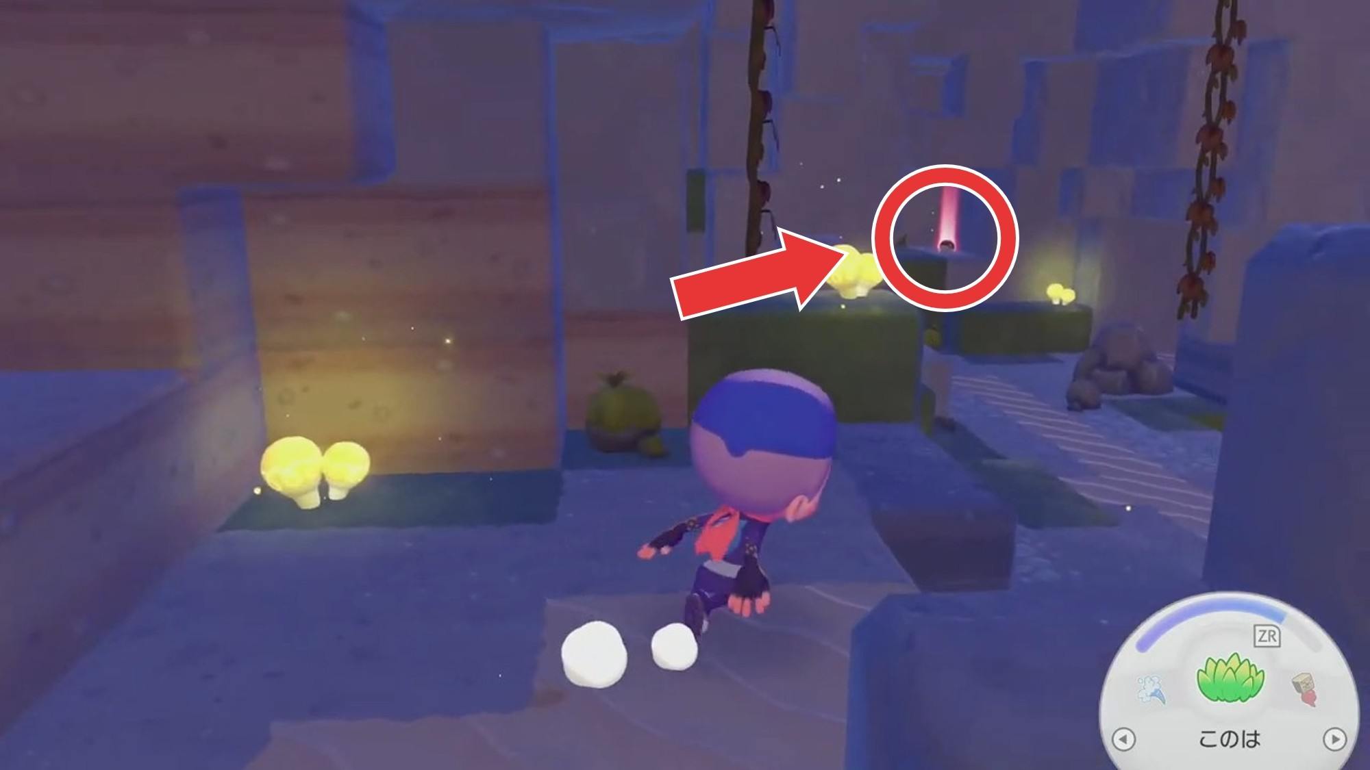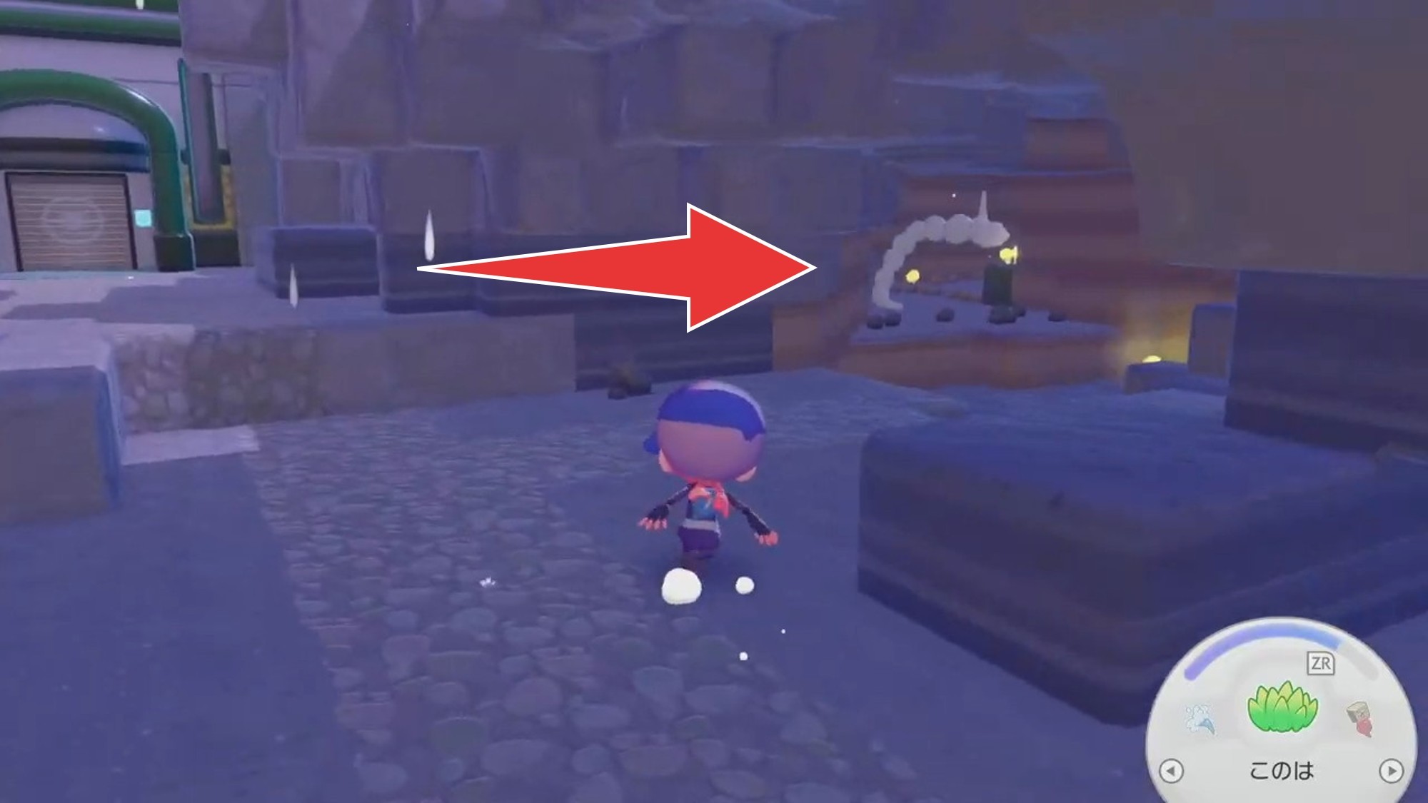 拡大するイワークがいる場所の右手奥にさらさらいわがあるイワークがいた場所の右手奥にある「さらさらいわ」を入手しましょう。生息地「さらさらな草むら」の作成の際に使用します。