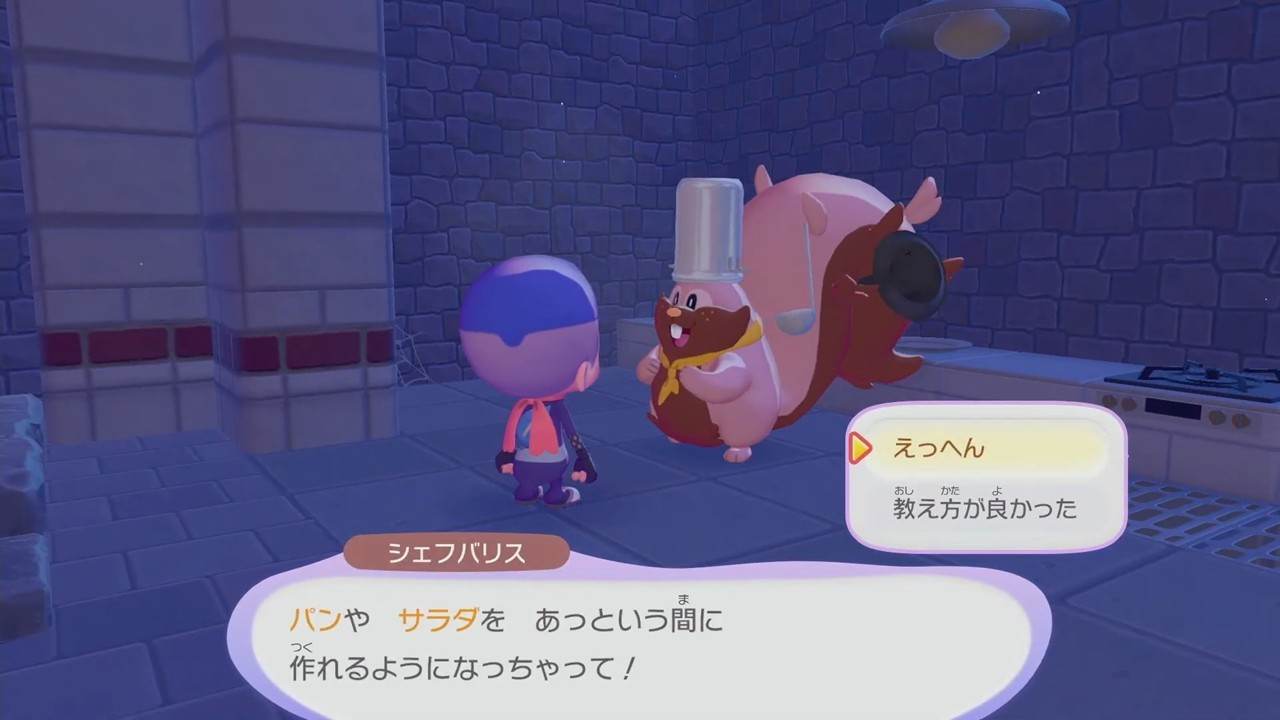 ハンバーグを作ろうは、パンを作ろう!クリア後に連続して発生するお願いごとです。おねがいごと進行中に、トロッコのレシピ習得、フライパンのレシピ習得、わざ「いあいぎり」強化ができます。