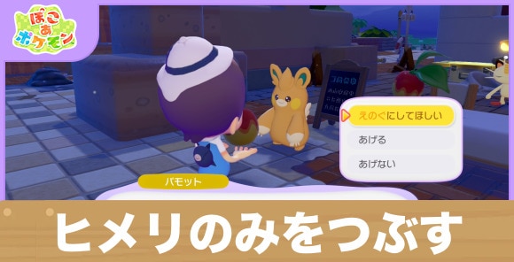 ヒメリのみをつぶしてもらおうは、ドーブルと会話すると発生します。初めて話しかける場合は、ヒメリをみを見せるお願いごとが発生するので、達成後に再度話しかけましょう。