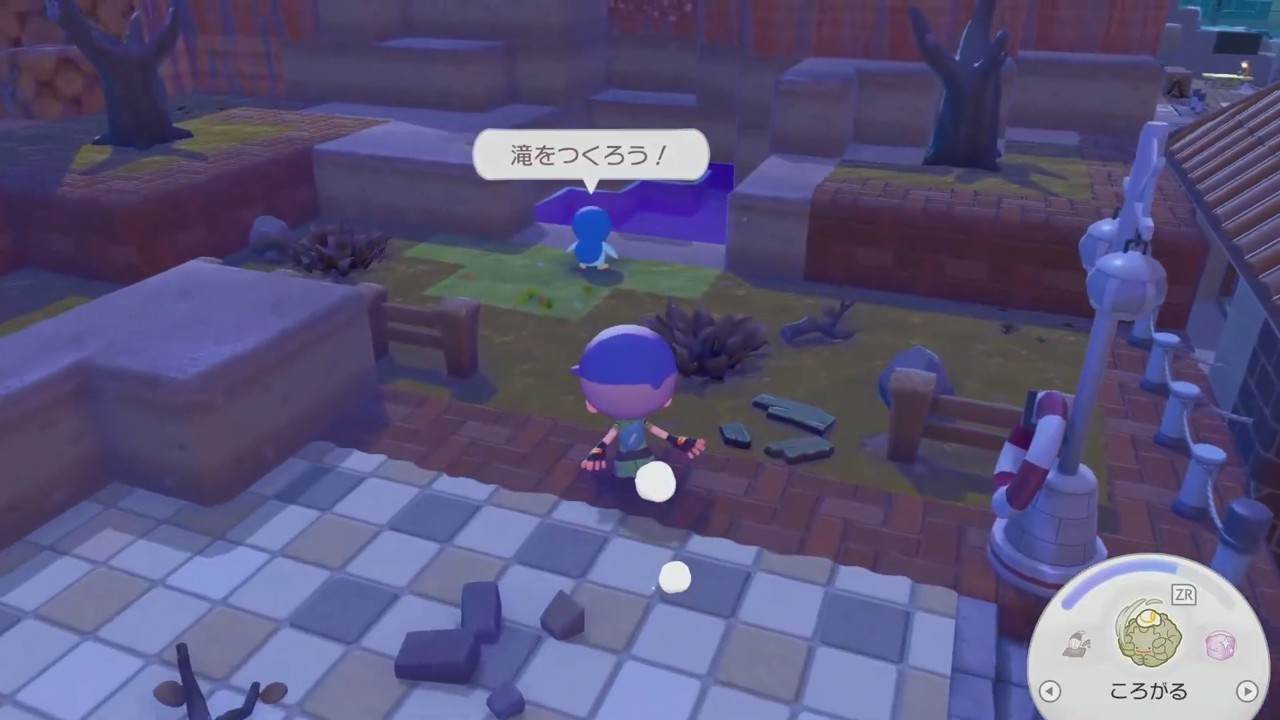 滝を作ろうは、ドンヨリうみべの街にいるポッチャマと会話すると発生します。ポッチャマはドンヨリうみべの街の池の近くにいます。