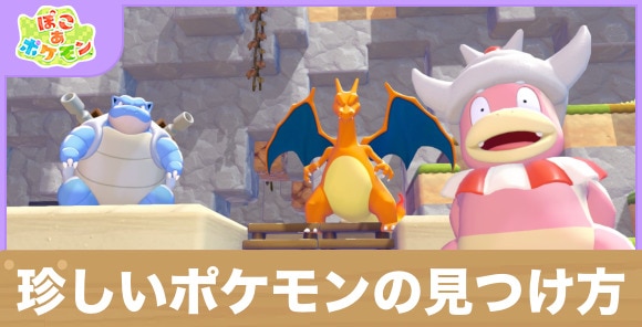 ぽこあポケモン(ぽこポケ)の珍しいポケモンの効率的な見つけ方をご紹介。めずらしいポケモンやとてもめずらしいポケモンを仲間にするコツや注意点、出現確率についても記載しています。