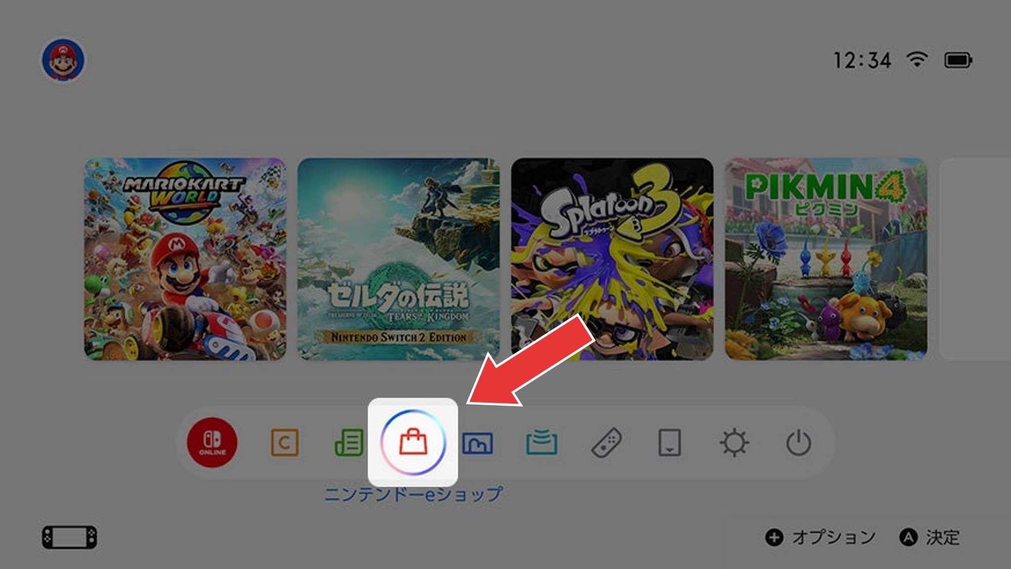 | 1 | 拡大するSwitchのHOMEから「ニンテンドーeショップ」を選択 |