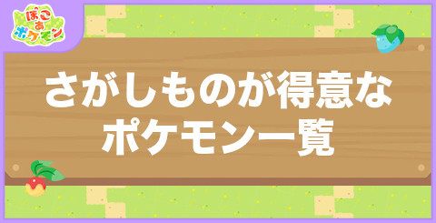 ぽこあポケモン(ぽこポケ)のさがしものが得意なポケモン一覧です。出現する条件や場所はもちろん、好きなものや好きな環境を記載しています。
