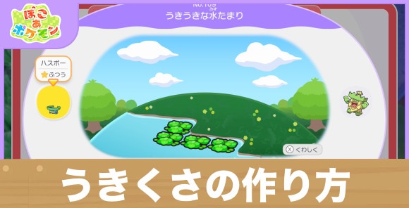 ぽこあポケモン(ぽこポケ)のうきくさの作り方をご紹介。うきくさで作れる生息地や壊した時に入手できる材料も記載しています。