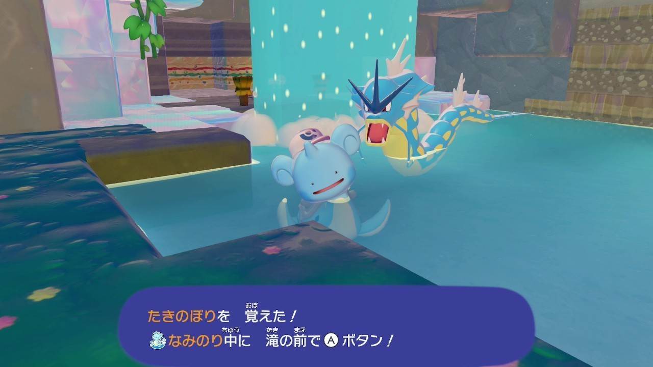 たきのぼりは、キラキラうきしまの街の北西の島にいるギャラドスから習得できます。ギャラドスと話して友達になり、アツアツスープパンを渡すと習得可能です。