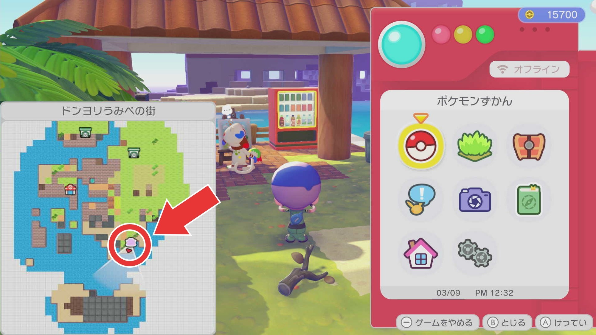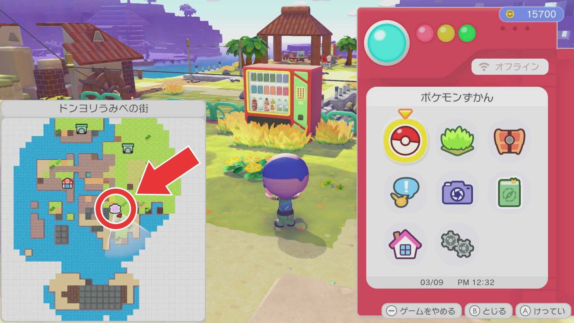 自販機は、ピカチュウにんぎょうで行ける「うなばらのゆめしま」でも入手できます。ただし、ランダムで出現するため、必ず入手できるわけではありません。